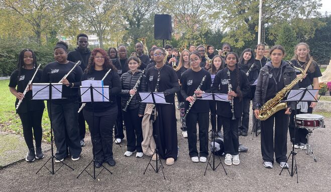 Les élèves de 4ème et 3ème OAE ont participé à la cérémonie commémorative du 11 novembre au Monument aux Morts de Lalande en interprétant la Marseillaise et la Marche des soldats de Robert Bruce.