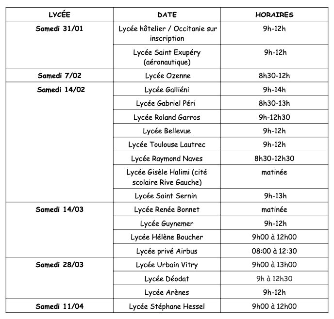 Voici les dates de journées portes ouvertes des lycées environnants :